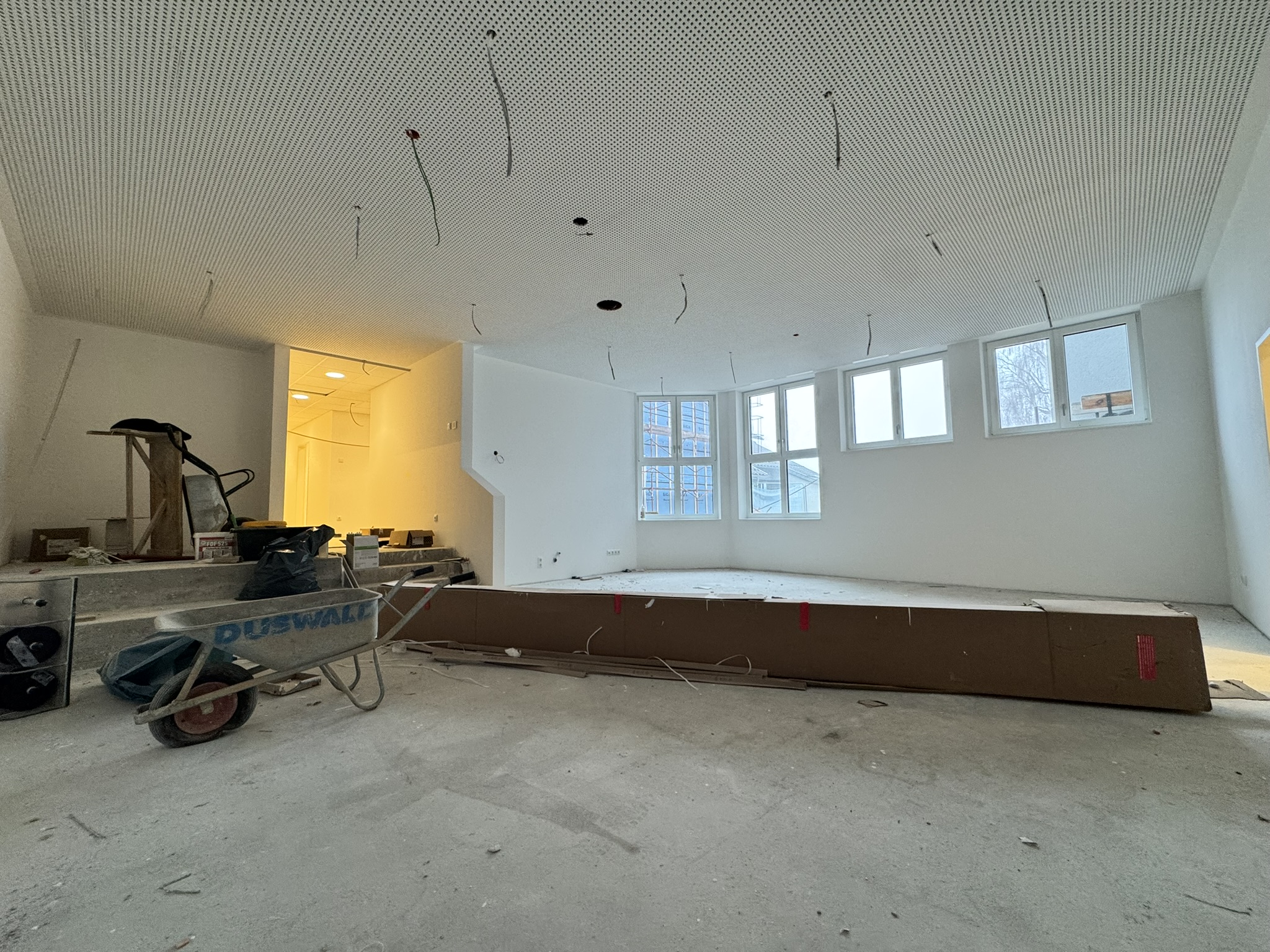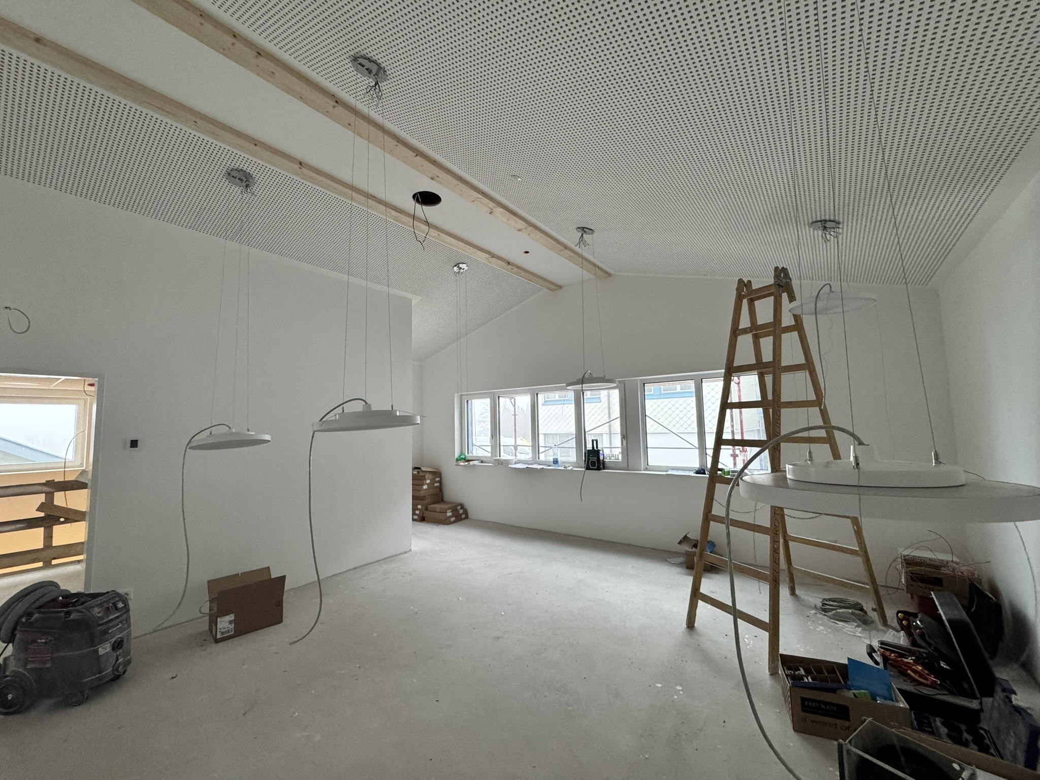 Auch die Elektroinstallationen sind beinahe fertiggestellt. Leitungen, Anschlüsse und technische Infrastruktur sind somit weitgehend vorbereitet, sodass wir dem Endausbau einen großen Schritt nähergekommen sind.