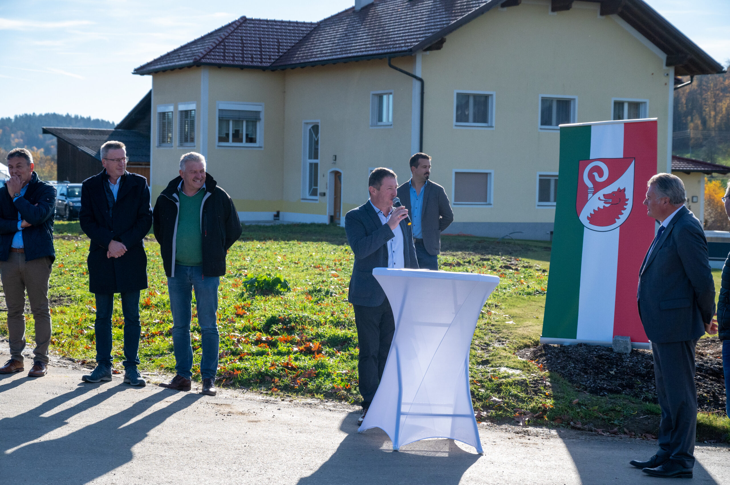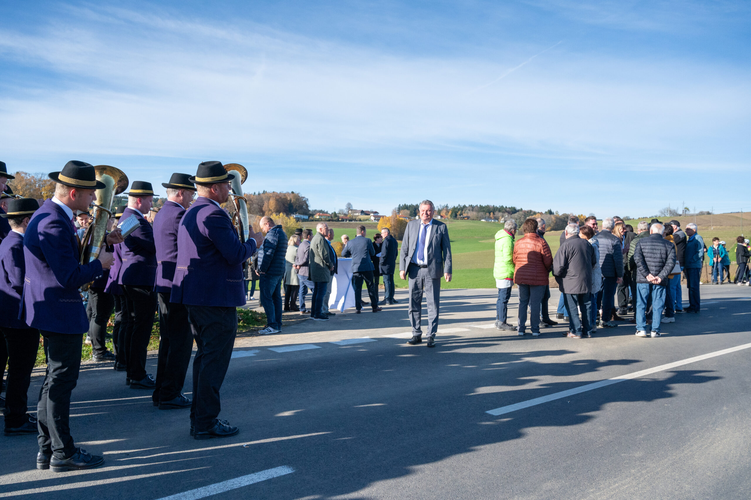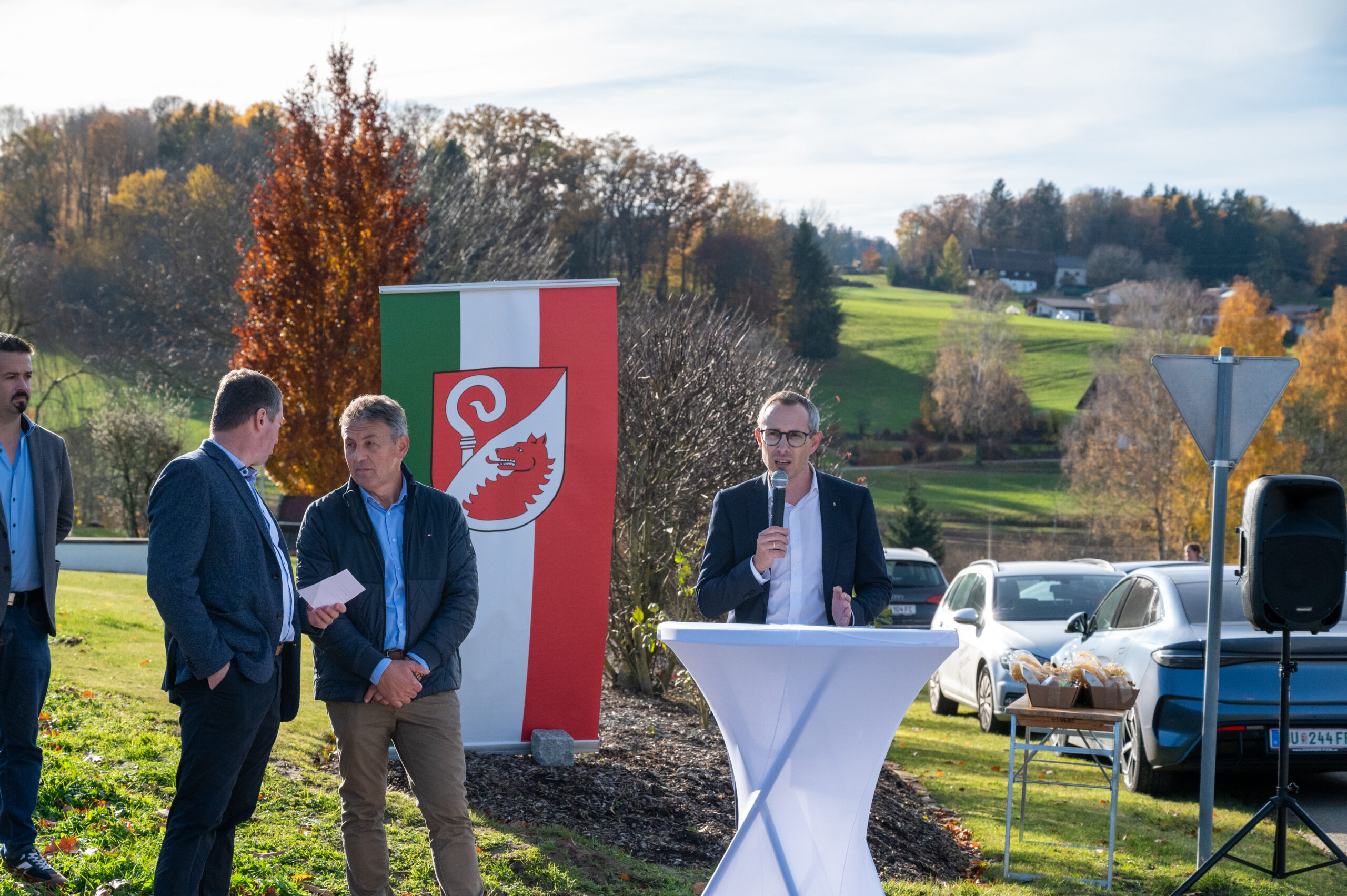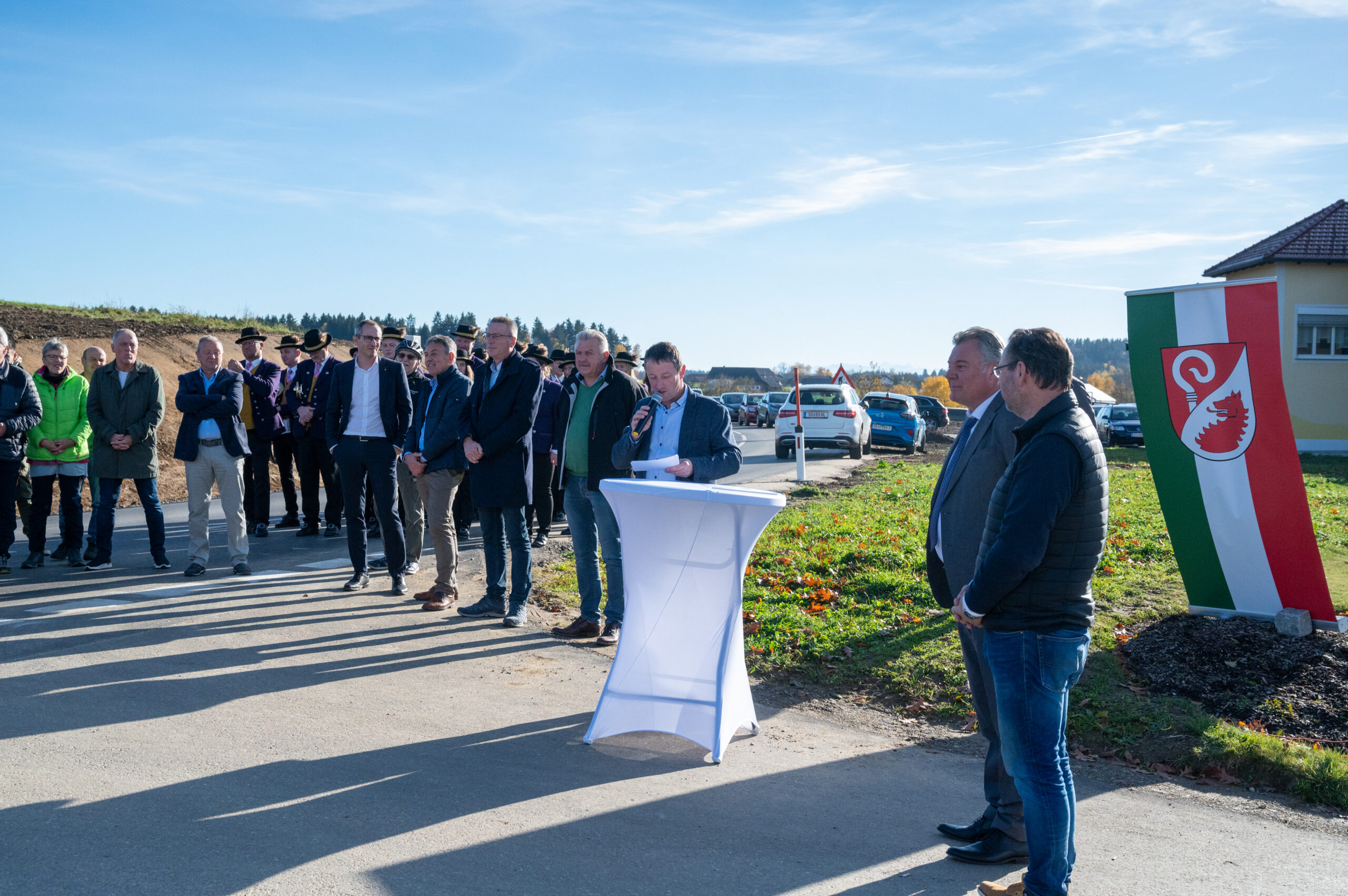 Landesrat Günther Steinkellner führte die offizielle Verkehrsfreigabe durch. In seiner Ansprache betonte er die Wichtigkeit moderner und sicherer Landesstraßen sowie die Bedeutung dieser Investitionen für Lebensqualität, Verkehrssicherheit und die Weiterentwicklung des ländlichen Raums.